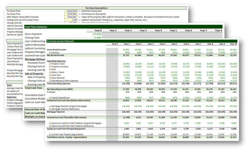 Easy-to-use spreadsheets that help you understand rental income, expenses, and profits — so you can confidently buy your next rental or flip.